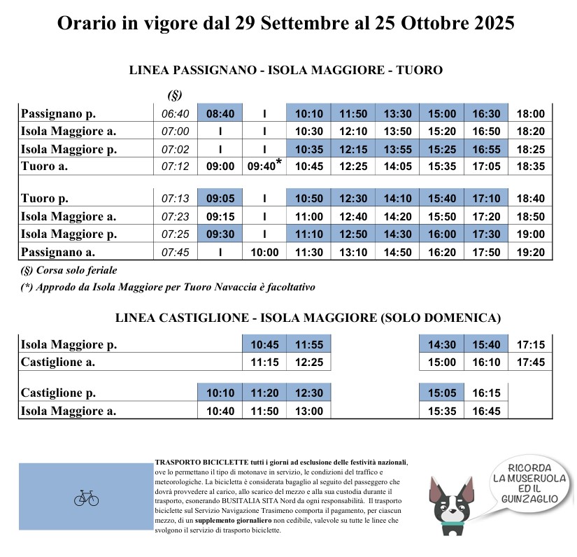 Scopri l’orario completo dei traghetti per Isola Maggiore e Isola Polvese